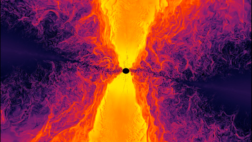 Unique aspects of the research include a new GR radiation MHD algorithm based on direct solution of the time-dependent radiation transfer equation, rather than approximate closure methods as have been used in the past. This method employs a novel geodesic mesh to resolve the radiation field over hundreds of angles in each computational grid cell. Moreover, as part of a NASA-funded Theory and Computational Network (TCAN), the researchers’ methods are being extended to include frequency-dependent transport, as well as accurate models for frequency- dependent emissivities and opacities accounting for atomic transitions in photoionized astrophysical plasmas.