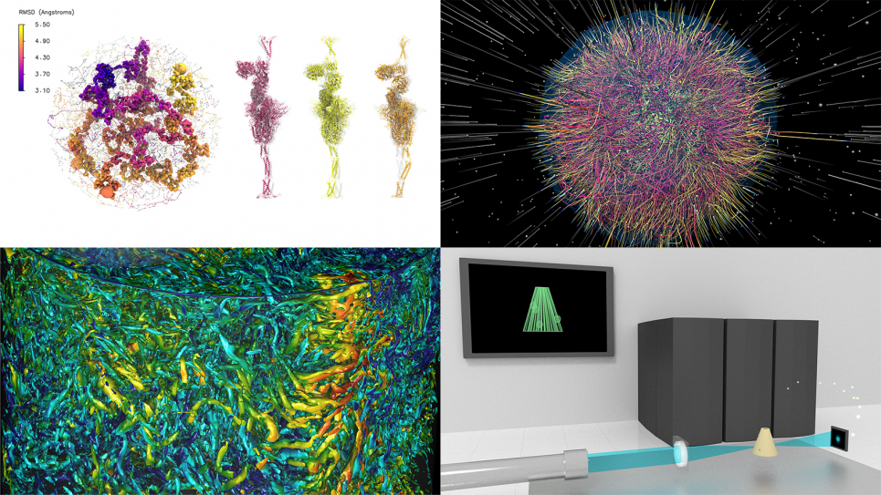 A multi-institutional team led by researchers from Argonne and the University of California, San Diego, carried out AI-driven simulations on multiple supercomputing resources, including the ALCF’s Theta system, to unravel the fundamental biological mechanisms of the SARS-CoV-2 virus while also identifying potential therapeutics to treat COVID-19. The team’s massive simulations on Summit at the Oak Ridge Leadership Computing Facility, a DOE Office of Science User Facility, were recognized with the Association for Computing Machinery’s (ACM) first Gordon Bell Special Prize for High Performance Computing-Based COVID-19 Research.