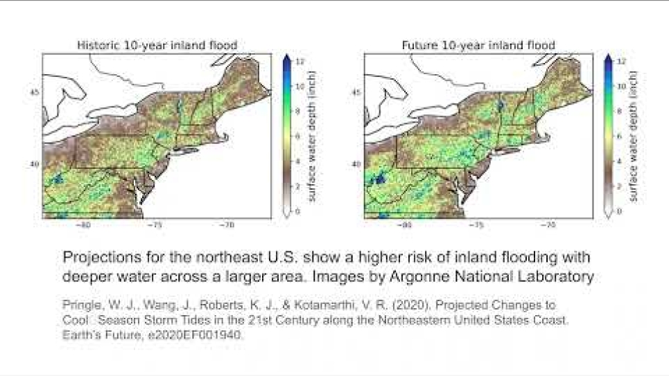 Researchers at the U.S. Department of Energy’s (DOE) Argonne National Laboratory have developed a new dataset that estimates increased inland flood risk from climate change during the mid-21st century. Their article about the dataset, published in the Journal of Hydrology: Regional Studies, looks specifically at a study of the Northeastern United States, but the dataset will soon be applied across the country and can be implemented in any global region.