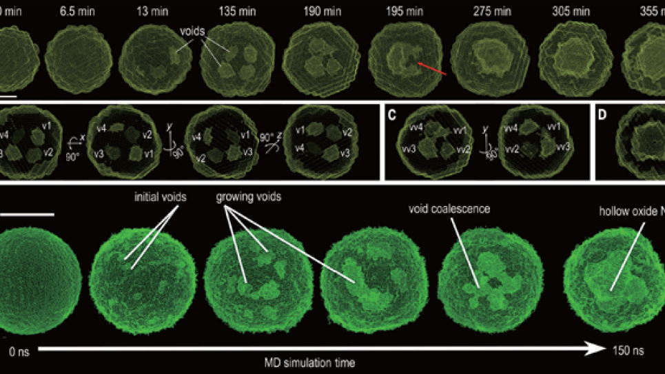 “During oxidation of metals, there is a directional flow of material across a solid/gas or solid/liquid interface which can sometimes lead to the formation of holes in the atomic lattice. This process is known as the Kirkendall effect. If well understood, it can be used to design exotic materials at the nanoscale,” said computational scientist Subramanian Sankaranarayanan, one of the principal investigators of the study and a researcher at Argonne’s Center for Nanoscale Materials.