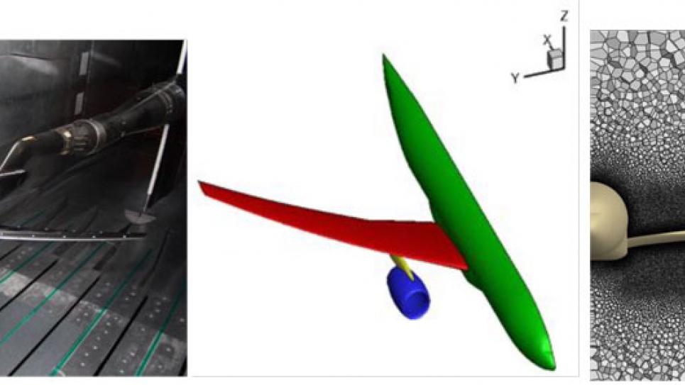 This project seeks to perform large-eddy simulation (LES) of flow over a realistic aircraft geometry. The team’s aim is to demonstrate, for the first time, the predictive capability of low-dissipation LES methodologies for practical external aerodynamics configurations. The major obstacle in accomplishing this goal is the presence of energetic near-wall eddies with diminishing length scales as one approaches the wall. Resolving such small but dynamically important near-wall eddies is infeasible even with the supercomputers to be introduced in the next decade. The team is addressing this issue by modeling the effect of the small-scale near-wall turbulence on the large-scales resolvable fluid motion in the outer portion of the boundary layer. This concept of wall modeling is now deemed indispensable for enabling predictive but affordable LES of practical aeronautical flows. However, application of wall-modeled LES (WMLES) to date has been confined largely to studies of canonical flows involving relatively low Reynolds numbers and mostly two-dimensional geometries. To this end, the team plans to conduct WMLES of the National Aeronautics and Space Administration (NASA) Common Research Model (CRM), which is a widely used community research model for a commercial transport aircraft. High-fidelity simulation of the NASA CRM is considered a grand challenge problem for computational fluid dynamics.