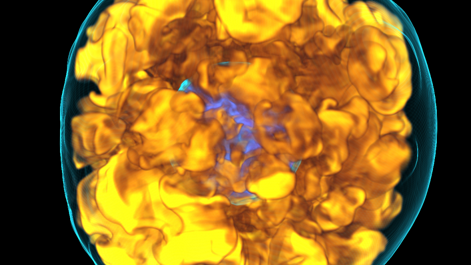 The team is presently running 3D simulations with the high-fidelity M1 neutrino transport using a state-of-the-art 20-solar mass (20 times the mass of our own sun) 1D progenitor model generated by the open-source MESA code. Some simulations include non-spherical velocity perturbations in the silicon- and oxygen-burning shells inspired by realistic convective burning in massive stars. Due to significant optimization of the M1 code, they have achieved even higher resolution in the 3D simulations than originally planned.