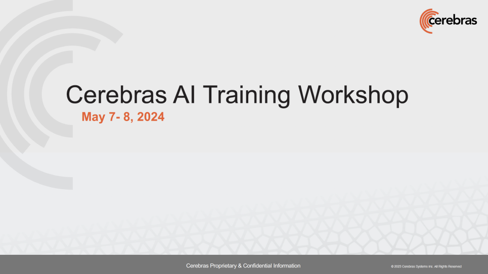 CerebrasDay1.pdf, CerebrasDay2.pdf pdf (15.65 MB) Download CerebrasDay1.pdf, CerebrasDay2.pdf pdf (10.68 MB) Download Related Event Cerebras AI Training Workshop