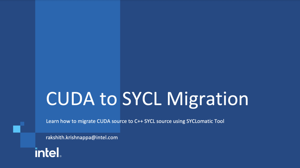 We will also give an overview of how migration is accomplished when CUDA source use a library like cuBLAS or cuFFT, we will show case other CUDA to SYCL migration projects that are completed and can be used as reference. We will also learn about the current limitation of the SYCLomatic tool, we will learn about some tips and tricks when migrating CUDA to SYCL using SYCLomatic tool.